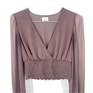 Aritzia Wilfred Wistful Genoa VNeck Sheer Sleeve Faux Wrap Chiffon Blouse Top