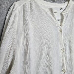 Aritzia Wilfred Women Sz M White Long Sleeve Crinkle Button Up Lettuce Hem Work