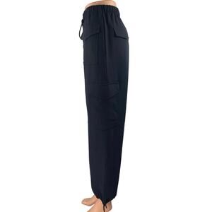 Aritzia Wilfred Women's Black High Waist Drawstring Baggy Cargo Trousers Pants 2