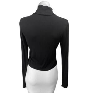 Aritzia Wilfred Women's Black Rib Knit Long Sleeve Turtleneck Crop Sweater Top Size L