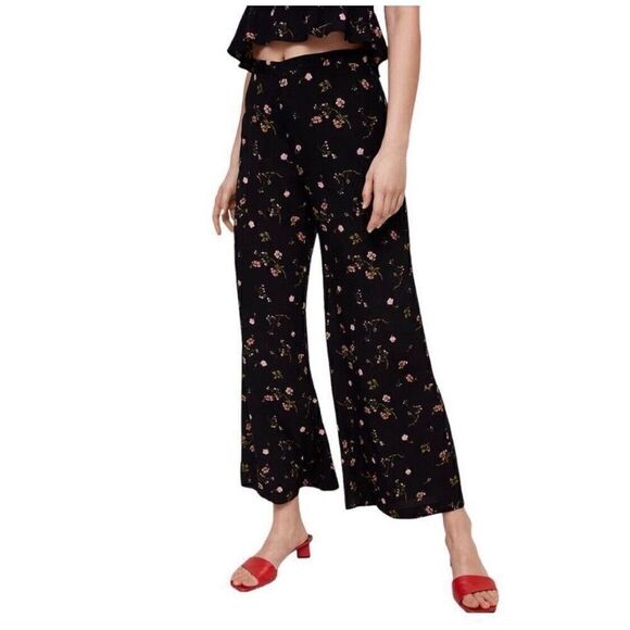 Aritzia Wilfred Womens Pants Pernelle Wide Leg Floral Black Claremont Sz. 4