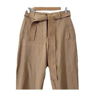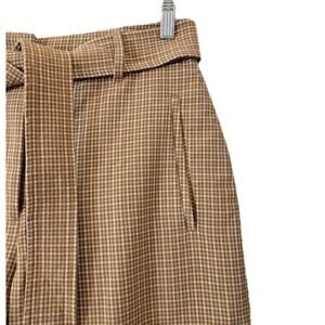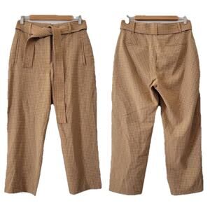 Aritzia Wilfred Women’s Size 8 Jalade Tan Checker Cropped Belted Pants Career T5