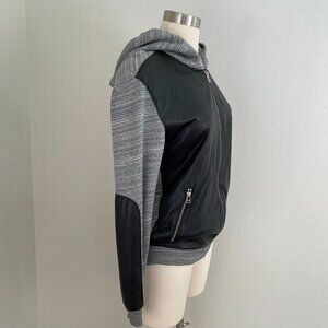 Aritzia Wilfred Womens XS Black Faux Leather Hoodie Sweatshirt Jacket Vegan