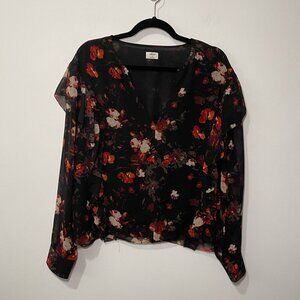 Aritzia Wilfred Women's black red floral ruffle long sleeve nadine blouse in M