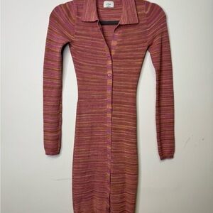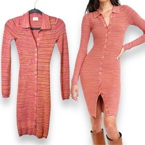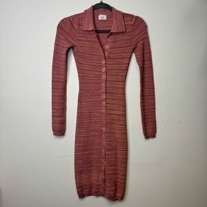 Aritzia Wilfred XS Stripe Ribbed Stretchy Knit Button Down 90s Midi Dress