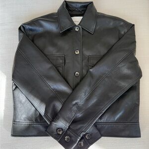 This is a lined shirt jacket with patch pockets, dropped shoulders and a boxy fit. It’s made with our innovative Vegan Leather that looks and feels like the real thing.