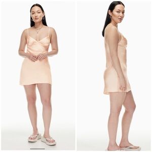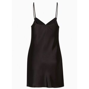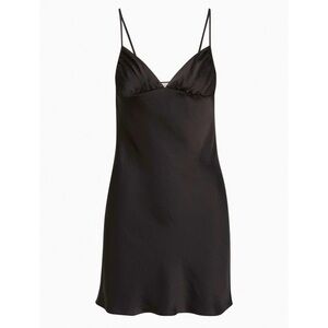 This is a V-neck mini slip dress with a soft-gathered bust and bias-cut body. It's made from Effortless Satin - drapey, lightweight Japanese satin with a glossy look and feel.