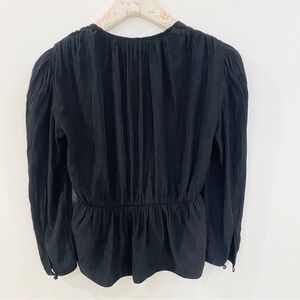 Super pretty Aritzia Shanina blouse by Wilfred in black. Celebrity favorite! With a pretty silhouette made from a drape, lustrous Japanese-milled fabric, this blouse will have you prepared for the next big occasion.