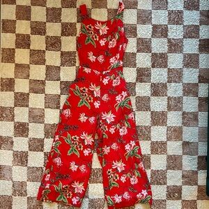 Aritzia Wilfred Écoulement Sleeveless Jumpsuit Red Floral Cut Out Tie Open Back