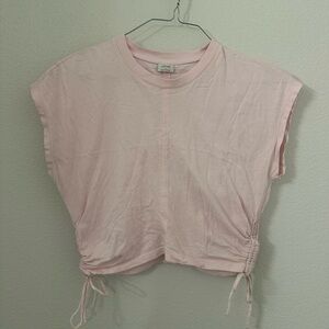 Aritzia Wilfred light Pink Ruched T-shirt Muscle tee size small side ties