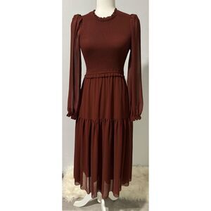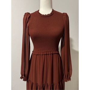 Aritzia Wilfred Rosalyn Midi smocked tiered sheer long sleeves fully lined XS no rips or stains