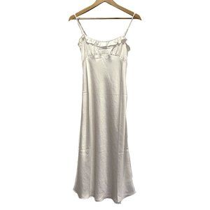 romantic slip flirty sexy chic glamorous aesthetic trendy aritzia ruffled satin dress ivory womens