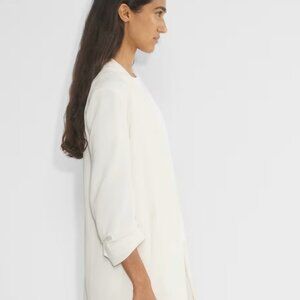 Aritzia Women's New Power Blazer | Light Birch | Size 2 | Mirror Crepe Fabric | Machine Wash Cold Hang to Dry | New with Tags - a bit wrinkled but can be cool ironed and can be washed and hung to dry