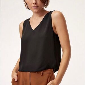 Elegant black sleeveless top with a flattering V-neck design. Perfect for any occasion.