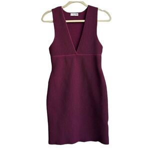 This is body-hugging mini dress with a plunging V neckline and fully fashioned construction. It's made with Sculpt Knit — Babaton’s signature figure-smoothing yarn. The perfect amount of stretch hugs in the right places to shape and sculpt your form. It’s constructed using an Ottoman stitch with close distinct ribs for a structured and textural feel.