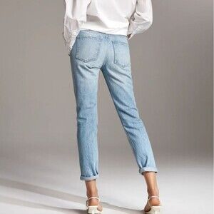 Inspired by the ones you've left behind, the Ex Boyfriend is a relaxed style made with premium organic cotton from Italy. Boyfriends may come and go, but these jeans are forever — non-stretch denim ensures they'll only get better with age. A slimmer fit through the hip and thigh makes the Ex Boyfriend just a bit sexier than your average. This version comes in a light medium wash with subtle distressing. Shirt is stylist's own.