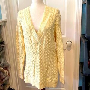 Wilfred butter, yellow wool sweater with cable knit design.