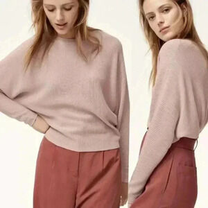 Aritzia Wilfred Coline Linen Dolman Sleeve Ribbed Sweater In Dusty Pink