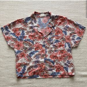Aritzia Wilfred Free Hibiscus Print Aloha Shirt small