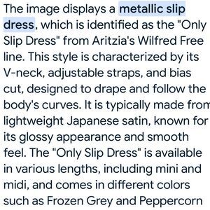 Aritzia Wilfred Only Slip Mini Dress Metallic Silver Lined• Large •Adjustable