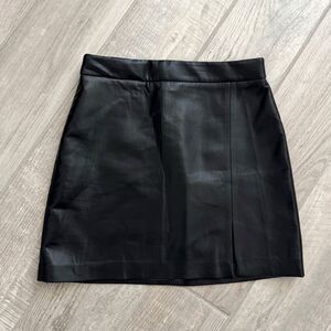 Aritzia Wilfred Patio (previously called Tempest) A-line mini skirt with a side slit. It’s made with innovative Vegan Leather that looks and feels like the real thing. Features buttery soft faux leather, hidden back zipper, darted back waist for shaping.