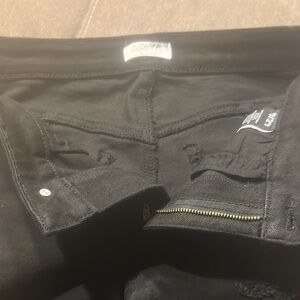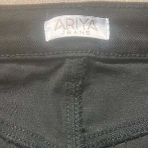 These Ariya black jean shorts feature a high-waisted, cutoff design, perfect for a casual and stylish look. Made from durable denim, they offer a sleek silhouette that pairs effortlessly with any top.