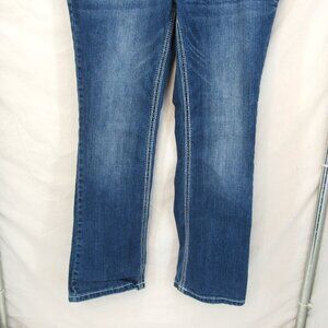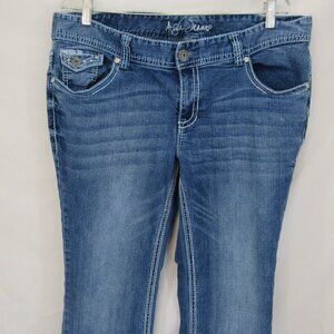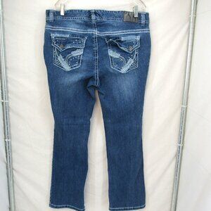 Ariya Jean 16 Short Wide Stitch Embellished Pockets Straight Leg Mid Rise Jeans