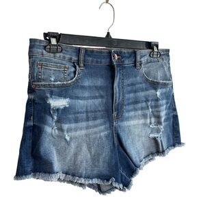 Ariya Jeans Shorts Distressed Raw Frayed Hem Womens Size 13 / 31 Stretch Denim