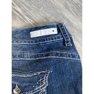 Ariya Jeans Shorts Womens 24 Blue Denim Mid Rise Plus Size Flap Pocket Embroider.