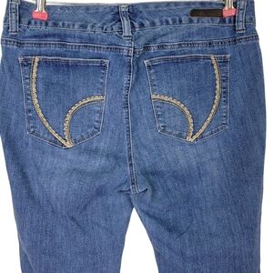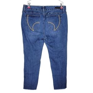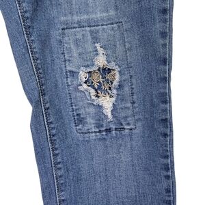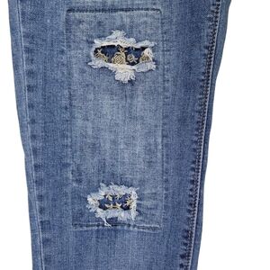Ariya Jeans Size 14 36X27 Blue Patched Button Fly Distressed Raw Hem Denim