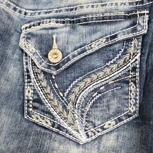 The Cutest Ariya Light Bleach Out Jeans with Embroidered Flap Back Pockets in Size 13/14.