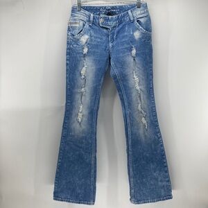 Ariya Vintage Y2K deconstructed Lowrise bleached flare jeans Waist 16”