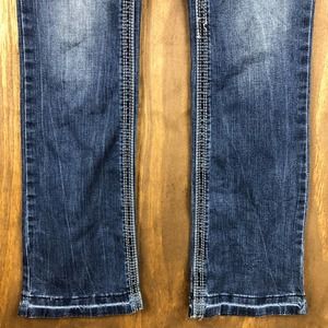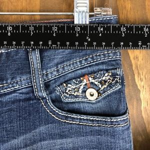Ariya Womens Jeans Blue Whiskered Bootcut Embroidered Stretch Size 5 Short