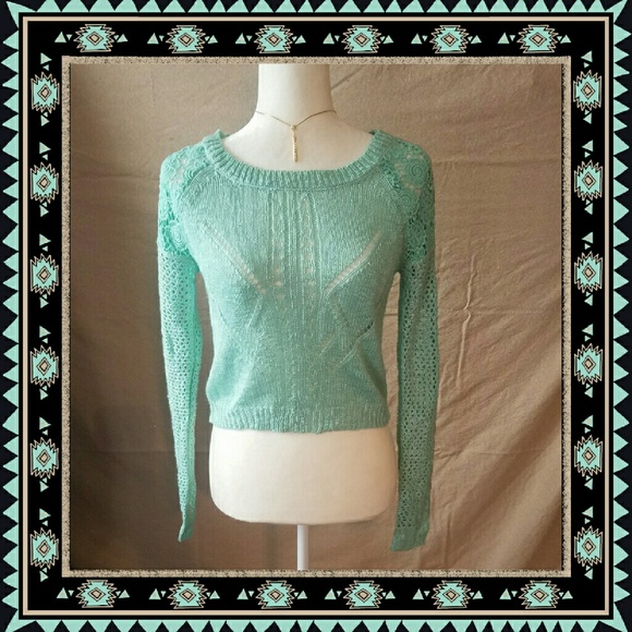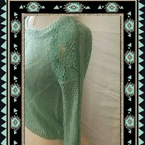 Arizona mint green crochet top with detail floral shoulders