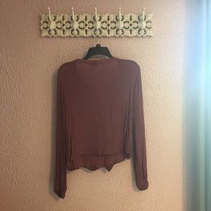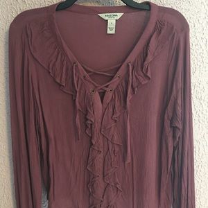 Maroon Arizona blouse in a size small. Worn twice and in great condition. Cute and flowy blouse with ruffle detailing and lace up neckline.