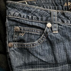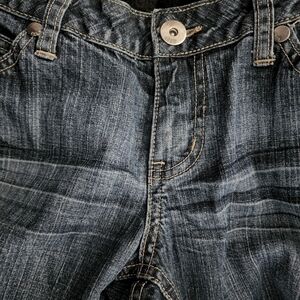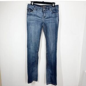 Arizona Blue Denim Jeans Juniors 7 Long Straight Leg Dark Wash Sandblasted EUC