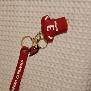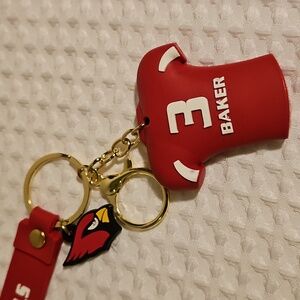 Red Arizona Cardinals keychain with #3 Budda Baker, Safety jersey design. Features team logo and wrist strap. See other teams with this seller. (Mich)