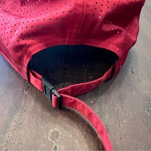 Stylish red baseball cap featuring an embroidered logo on the front. Perfect for casual wear.