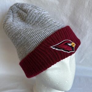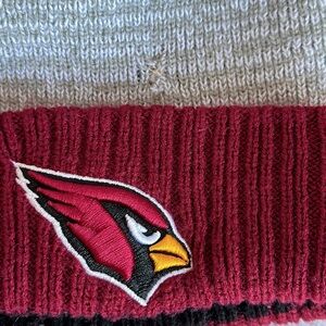Arizona Cardinals heather gray beanie hat. Unisex. Good preowned condition; one repaired area in front (shown on closeup photo). Great for cold-weather games or general winter wear.