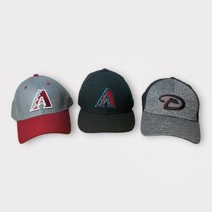 Arizona Diamondbacks Baseball Caps Lot of (3) New Era 59/50 39/30. Black in-field 7 3/8 low profile, grey/red med-lg, grey/black sm-md. All excellent condition.