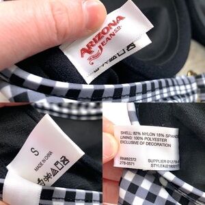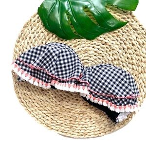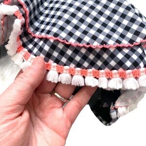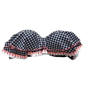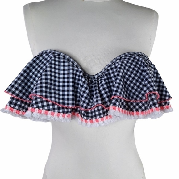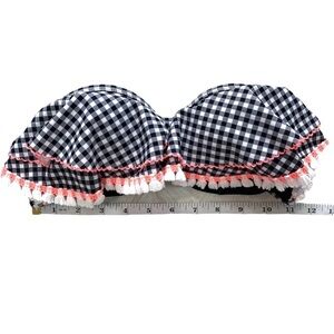 Arizona Jean Company Black White Picnic Gingham Plaid Coral Fringe Tassel Trim Flounce Ruffled Bandeau Bikini Top Size Small