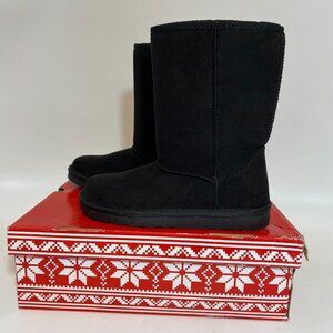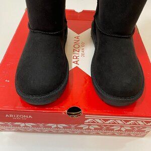 Arizona Girl's Black Short Winter Boots sz 5 Faux Suede/Faux Fur Pull-on NEW