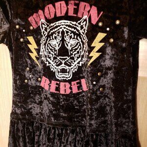 Arizona Girls black velvet rock and roll tunic top 10-12 Good condition. Measurements are: 20” from shoulder to hem, and 14” from armpit to armpit.