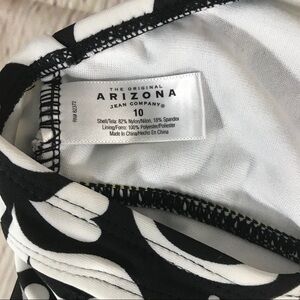 Arizona girls swimsuit tankini. Black and white hearts, flowers, Peace signs design with yellow trim. Size 10. Great condition. No rips or holes..There is one small spot on the back from chlorine. Please see attached photo for reference. Smoke free home.
