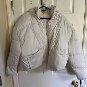 Arizona Heavyweight Womens Juniors Puffer Jacket in White Sand, Sz M -- NWT