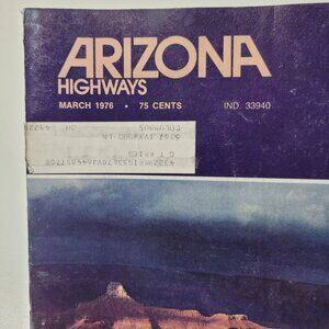 Vintage March 1976 issue of Arizona Highways Magazine featuring stunning artwork, historical insights, and seasonal weather details. A perfect collectible for history and art enthusiasts.