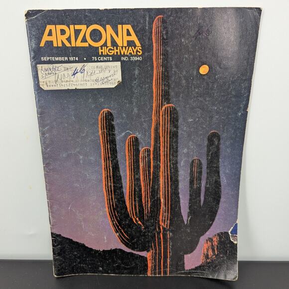 Vintage September 1974 issue of Arizona Highways magazine, known for its high-quality photography and stories highlighting the beauty, culture, and history of the American Southwest. This issue includes stunning color images of Arizona’s landscapes, copper mining, astronomy and observatories, historic wagon scenes, and desert life. A collectible for fans of vintage travel magazines, Southwest history, or mid-century photography.