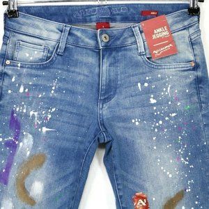 Arizona Jean Co Ankle Jegging Skinny Jeans Distressed Destroyed Paint Splattered