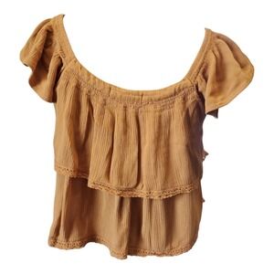 Arizona Jean Co Blouse Womens M Bronze Tiered Cropped Short Sleeve Top Used