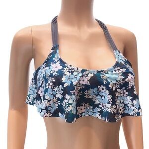 Arizona Jean Co Blue Floral Flounce Bikini Top
